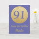 Bonne 91e Anniversaire et Carte Parties scintillant Or avec nom personnalisé. Pour plus de personnalisation, cliquez sur le bouton "Customiser" et utilisez notre outil de conception pour modifier ce modèle.