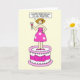 Une caricature d'une dame debout sur un gâteau géant disant 'Joyeux anniversaire à mon poissonnier'.