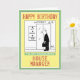 Une carte d'anniversaire avec un dessin d'un homme attendant un ascenseur ou un ascenseur. Les boutons ont les options Up, Down et Lucky Dip. Carte idéale pour n'importe quel gérant de maison.