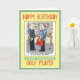 Drôle dessin animé sur le thème du golf dans lequel un facteur a un ensemble de clubs de golf dans son sac postal. Carte d'anniversaire idéale pour un golfeur ou un joueur de golf.
