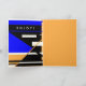 Animé, contemporain et artistique, dans l'esprit du style moderne du milieu du siècle rétro. Une image abstraite (qui évoque un personnage humain ?) est créée par l'assemblage de formes géométriques royales bleues, noires et blanches sur un arrière - plan orange vif. Cette photo est présentée sur le recto de la carte avec "Joyeux anniversaire" en caractères blancs gras. Le rabat intérieur gauche/dessus a la même image et les mêmes couleurs, maintenant transposées horizontalement, avec le message "Profitez". Le rabat intérieur droit/bas est orange clair et blanc, en attente de votre message d'anniversaire personnalisé.