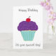 Joyeux Anniversaire C'est votre jour spécial écrit en écriture noire. Un grand cupcake à la vanille délicieux dans un emballage plissé bleu clair. Dégivrage violet et cerise rouge sur le dessus. Des images colorées de ballon d'anniversaire à l'intérieur. Laissez le verset de la carte, ou personnalisez-le avec le vôtre. Oeuvre et design d'origine © TamiraZDesigns.