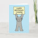 Un chat gris de bande dessinée mignonne supportant un citron a coloré le signe qui indique le "joyeux anniversaire Jason".
