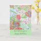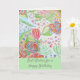 Bonne carte d'anniversaire. Les fleurs abondent dans ce design floral lumineux et gai. Coraux et bleus tourbillonnant dans l'eau.