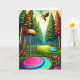 Carte de la fête des pères de parcours de disc golf rétro avec un aigle volant au-dessus des pins. Vous êtes le meilleur papa par ! Punition de disc golf drôle.