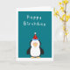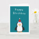 Joli Pingouin d'anniversaire sur arrière - plan Turquoise. Cet article peut être acheté séparément ou en partie d'un ensemble complet. Voir les collections ensoleillées. La carte est vide à l'intérieur pour votre propre message personnel. "heureux anniversaire" turquoise "pingouin mignon" "pingouin dans le casquette de fête" "pour lui" "pour elle" "pour n'importe qui" "studios ensoleillés"