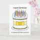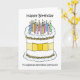 Un dessin animé d'un grand gâteau d'anniversaire recouvert de bougies allumées et accompagné des mots 'Joyeux Anniversaire à un Professeur d'Aérobic Spécial'.