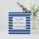 Carte Joyeux Anniversaire rayé bleu et bleu clair