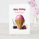 Un cône de crème glacée à la fraise délicieuse entouré d'une carte d'anniversaire de cerise pour votre bien-aimé.