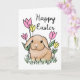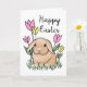 Cette adorable carte de Pâques Joyeuses présente une jolie illustration lapine avec des fleurs de printemps et de l'herbe. L'intérieur dit : "Heureux, Pâques chanceux pour vous !" qui peut être enlevé ou customisé.