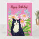 Bonne carte d'anniversaire avec un chat noir et blanc aux cheveux longs. Pour les amoureux de les chats et les propriétaires de chatons !