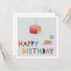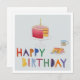 Cette carte lumineuse et joyeuse est l'impression d'un collage fait à la main représentant un gâteau d'anniversaire et une boisson chaude avec des lettres amusantes et colorées.