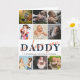 Carte de collage photo moderne et élégante comprenant 9 photos, écriture typographique ''papa on t'aime'' et noms des enfants sur le devant et message joyeux fête des pères à l'intérieur. Cadeau idéal pour la fête des pères.