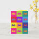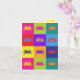 Carte d'anniversaire de style pop art vibrant avec des carrés colorés contenant des images de crabe. Lumineux, arty et gai. Customisez le texte à l'intérieur de la carte pour convenir.