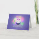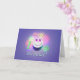Carte avec ma conception originale d'un gâteau d'anniversaire souriant avec des yeux de ballon, dix bougies et le texte "Joyeux 10e anniversaire !" Verse à l'intérieur.