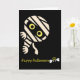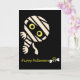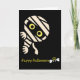 Une carte d'Halloween effrayante et mignonne représentant une abeille momie joueuse qui regarde dehors pour vous souhaiter un joyeux « Joyeux Halloween ! » 🐝🎃