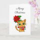 Chatte orange mignonne avec Poinsettia portant des mitaines mignonnes Joyeuse Carte de Noël.