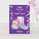 Un premier jour de collège heureux et personnalisé avec un sac à dos, un carnet et de jolies chaussures ainsi que des banderoles pastel sur le devant de cette carte de première journée d'école pour elle. Vous pourrez facilement personnaliser l'avant avec son nom et le message de la carte intérieure peut également être personnalisé si vous le souhaitez. Une façon merveilleuse de soutenir votre fille et de l'encourager!