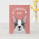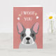 Cette adorable carte présente une charmante illustration de Bulldog français aux tons rose doux et neutres, complétée par la phrase ludique "JE VOUS EMBOUCHE". Autour du texte sont des graphismes de coeur délicats, renforçant son atmosphère chaleureuse et aimante. Contre un arrière - plan rose pastel, ce design est parfait pour exprimer de l'affection, que ce soit pour la Saint-Valentin, les anniversaires, ou juste pour partager un peu d'amour chiot. Entièrement personnalisable, il constitue un choix idéal pour les amoureux de les chiens et ceux qui recherchent une carte amusante mais chaleureuse.
