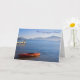 Un kayak rouge chauffé près de la rive du lac George à New York. La lumière arrive tôt le matin au-dessus des montagnes d'Adirondack et illumine la brume nichée au bord du lac. Customisez cette carte pour Fête des pères ou Anniversaire !