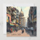Image de carte postale de Kolkata, Inde Carte postale illustrant l'animation d'une rue du centre-ville avec des immeubles, des restaurants, des magasins et des personnes à moto.