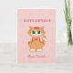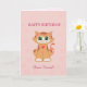 Ginger Kitty Chat Anniversaire souhaite à l'ami Card. Chat mignon entouré de fleurs cardiaques sur arrière - plan or rose. Tous les textes peuvent être personnalisés.