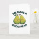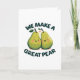 Partagez une tranche d'amour avec cette adorable carte de vœux pliée "Nous formons une excellente poire". Parfaite pour la Saint-Valentin, elle présente deux poires mignonnes avec des visages joyeux et un jeu de mots doux qui célèbre un match parfait. L'intérieur de la carte est vierge, attendant votre sentiment personnalisé pour compléter ce gage attentionné et charmant de votre affection. C'est le choix idéal pour celui qui vous complète parfaitement, tout comme une paire de poires dans un bol de fruits d'amour.
