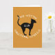 "La sorcière est en lancer des sorts" en texte blanc entourant un chat noir sur un arrière - plan orange texturé.
