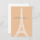 Style minimaliste moderne blanc tour Eiffel silhouette graphique sur arrière - plan pêche. Texte "penser à vous" personnalisable