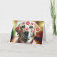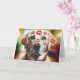 Un gros plan d'un chien de repérage du Labrador avec un collier rouge a plusieurs baisers rouges à rouge à lèvres sur son visage, lui donnant un look mignon pour la Saint-Valentin. Le texte intérieur peut être modifié.