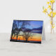 Un magnifique coucher de soleil sur le lac orange, violet et bleu, au-delà d'immenses arbres sans feuilles, fait l'objet de ma carte "Penser à vous". J'ai photographié cette photo le long de la rive du magnifique lac Winnebago à Quinney, Wisconsin.