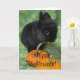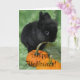 Cette carte comporte un petit lapin adorable sélectionnant son citrouille de Halloween.