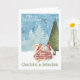 Lapins de Pâques embrassant en pull d'hiver de Noël sur un fond de scène de neige avec arbre de Noël - carte de vœux de Ricaso - ajoutez facilement votre propre texte