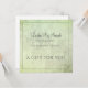 Une belle carte cadeau texturée de services de beauté verte sauge avec la police de caractères de script nom d'entreprise pour personnaliser avec vos informations. Vous pouvez ajouter une date d'expiration ou d'autres informations. Ce charmant certificat convient à tous les services de beauté tels que la teinture des cils et les extensions, le maquillage, les cheveux, les ongles et les services de salon.