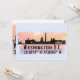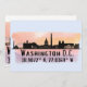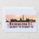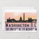 Cartes de voeux avec silhouette d'horizon de la ville de Washington DC avec éclaboussure d'aquarelle et coordonnées de latitude et longitude