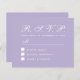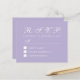 Un budget simple et minimaliste pour un mariage. Il n'a que du texte blanc sur lavande (violet) arrière - plan. Le titre RSVP et la lettre M sont écrits dans un élégant script calligraphique, le reste en casquette.