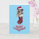 Un chiot de Shepherd australien porte un chapeau de Père Noël et sort d'une réserve de Noël.