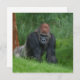 Dans cette image passionnante, un puissant gorille argenté se dresse dans une herbe verdoyante, son regard fixé devant avec un arbre solitaire dans l'arrière - plan.