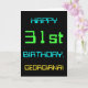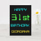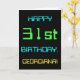 Ce design simple et amusant de carte de voeux d'anniversaire comporte un message comme "HAPPY 31st BANTHDAY, GEORGIANA!". Il présente également une apparence amusante inspirée de l'informatique numérique. Le nom à l'avant et le message à l'intérieur peuvent être customisés. Il pourrait être envoyé ou donné à quelqu'un qui célèbre son trente et unième anniversaire et qui travaille (ou a travaillé avant la retraite) comme administrateur de système informatique, programmeur informatique, administrateur réseau, ingénieur électrique, développeur logiciel, ou qui aime utiliser des ordinateurs. [~Z0000100]