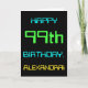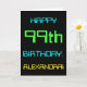 Ce design simple et amusant de carte de voeux d'anniversaire comporte un message comme "HAPPY 99th BIRTHDAY, ALEXANDRA!". Son look s'inspire du domaine de l'informatique numérique. Le nom à l'avant et le message à l'intérieur peuvent être personnalisés. Il pourrait être envoyé ou donné à quelqu'un qui célèbre son quatre-vingt-dix-neuvième anniversaire et qui peut-être travaille (ou a travaillé avant la retraite) comme programmeur informatique, développeur logiciel, administrateur de base de données, administrateur réseau, ingénieur électronique, ou qui aime autrement utiliser des ordinateurs. [~Z0000100]