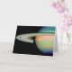 Cette fausse image de couleur délicieusement détaillée de Saturne est une combinaison de trois images prises en janvier 1998 par le télescope spatial Hubble et montre la planète en anneau dans la lumière infrarouge réfléchie. Différentes couleurs ont indiqué des hauteurs et des compositions variables de couches de nuages généralement considérées comme composées de cristaux de glace ammoniacale. Les anneaux accrocheurs projettent une ombre sur l'hémisphère supérieur de Saturne, tandis que la bande lumineuse visible dans la partie gauche de l'ombre est la lumière du soleil infrarouge qui traverse le grand trou dans les anneaux connus sous le nom de Division Cassini.