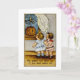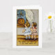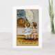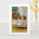 Carte de voeux Halloween vintage illustrant un enfant regardant un jack o'lantern dans la fenêtre.