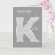 Charme gris argenté de parties scintillantes de faux de monogramme de la lettre K personnalisé avec la carte d'anniversaire nommée