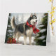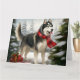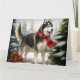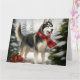 Carte Lévrier sibérien Husky dans la neige de Noël