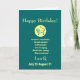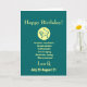 Carte d'anniversaire avec signe de naissance de Léon (23 juillet - 21 août) avec liste des traits de personnalité de Léon. Lusinhas do Sul