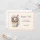 A charming watercolor illustration of a soft, fluffy bunny resting inside a delicate floral teacup, surrounded by blooming flowers and fresh green leaves. The pastel colors and gentle details create a warm, dreamy atmosphere, perfect for spring, Easter, or cute nursery-themed designs.
