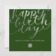 Élégante carte de voeux d'anniversaire élégante Carré moderne à deux côtés propre et glamour avec simulation de faux feuille d'argent à la main texte de script sur un arrière - plan vert de forêt chic. Cette couleur peut être changée en n'importe quelle autre. Veuillez noter que l'argent dans ce design est un imprimé gris couleur plat et n'est pas un véritable papier métallique. Une combinaison parfaite d'élégance et de luxe professionnel formel avec une atmosphère chaleureuse. Changez l'image "votre logo ici" avec votre logo ou retirez-la si vous voulez l'utiliser sans logo. N’oubliez pas de customiser le texte avant et le texte arrière.