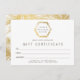 Coordonné avec le logo Golden Palms Spray Tanning Salon sur le modèle de carte d'affaires blanche d'ici 12 h 01. Un logo moderne et simple de feuilles de palmiers sont en silhouette dans une forme hexagonale contenant votre nom ou nom d'entreprise sur ce modèle modèle de certificat-cadeau personnalisable. Placé sur un arrière - plan blanc pour une esthétique propre et luxueuse. Parfait pour les salons de bronzage, les soins tropicaux de la peau et/ou la protection solaire, les salons cireurs, les boutiques et plus encore. Art et design © 1201AM CREATIVE