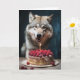 Dévoilez le côté sauvage des fêtes d'anniversaire avec cette carte rustique et captivante ! Voici un loup heureux, ses yeux rayonnant d'une joie sauvage, debout fièrement à côté d'un gâteau d'anniversaire. Le gâteau, orné d'une seule bougie et de nombreux framboises au sommet, semble aussi tentant qu'une chasse fraîche sous une pleine lune. Aménagé dans une ambiance rustique qui ajoute une touche de charme sauvage, ce décor est à la fois majestueux et chaleureux. A l'intérieur, il y a un espace vide, parfait pour vos propres voeux de bonheur ou votre sagesse louche.