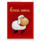 Vraiment mignonne carte ! Ce charmant petit mouton va répandre l'amour à qui tu le donnes. La carte présente un mouton moelleux avec les mots "love ewe" ci-dessus. Le arrière - plan est fait de coeurs rouges. Fait une carte de Saint-Valentin drôle et fantaisiste ou pour n'importe quel moment vous voulez donner quelque chose de spécial à celui que nous aimons ~